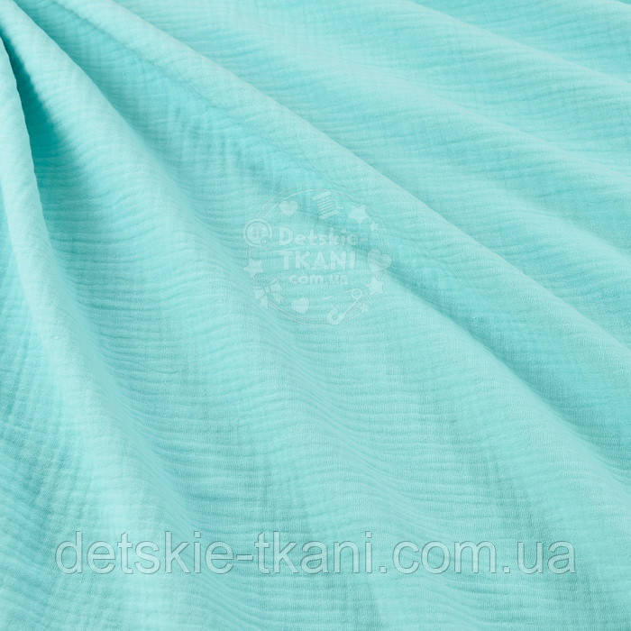 Муслін однотонний двошаровий жатий, колір світло-бірюзовий, ширина 135 см