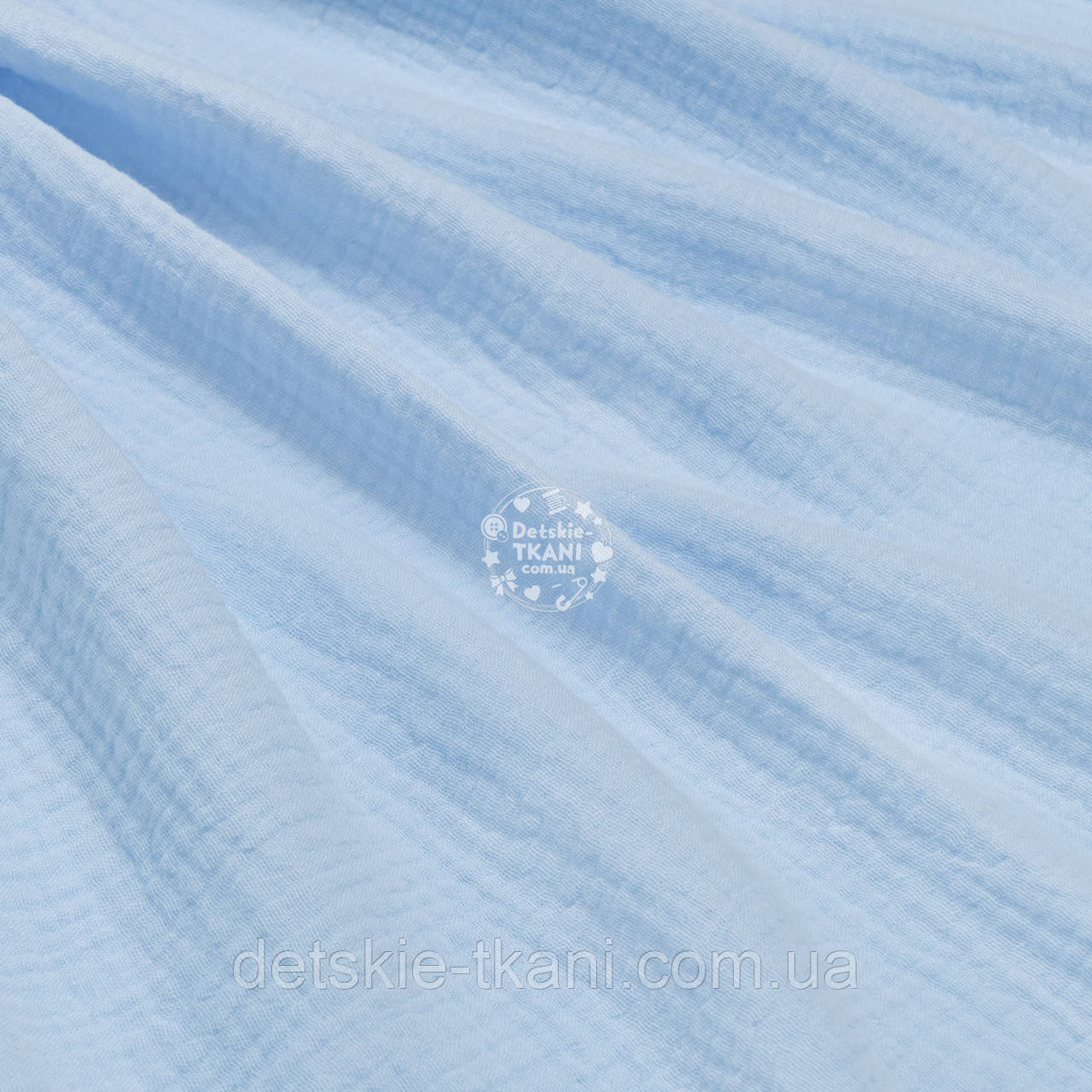 Муслін однотонний двошаровий жатий, колір світло-блакитний, ширина 135 см