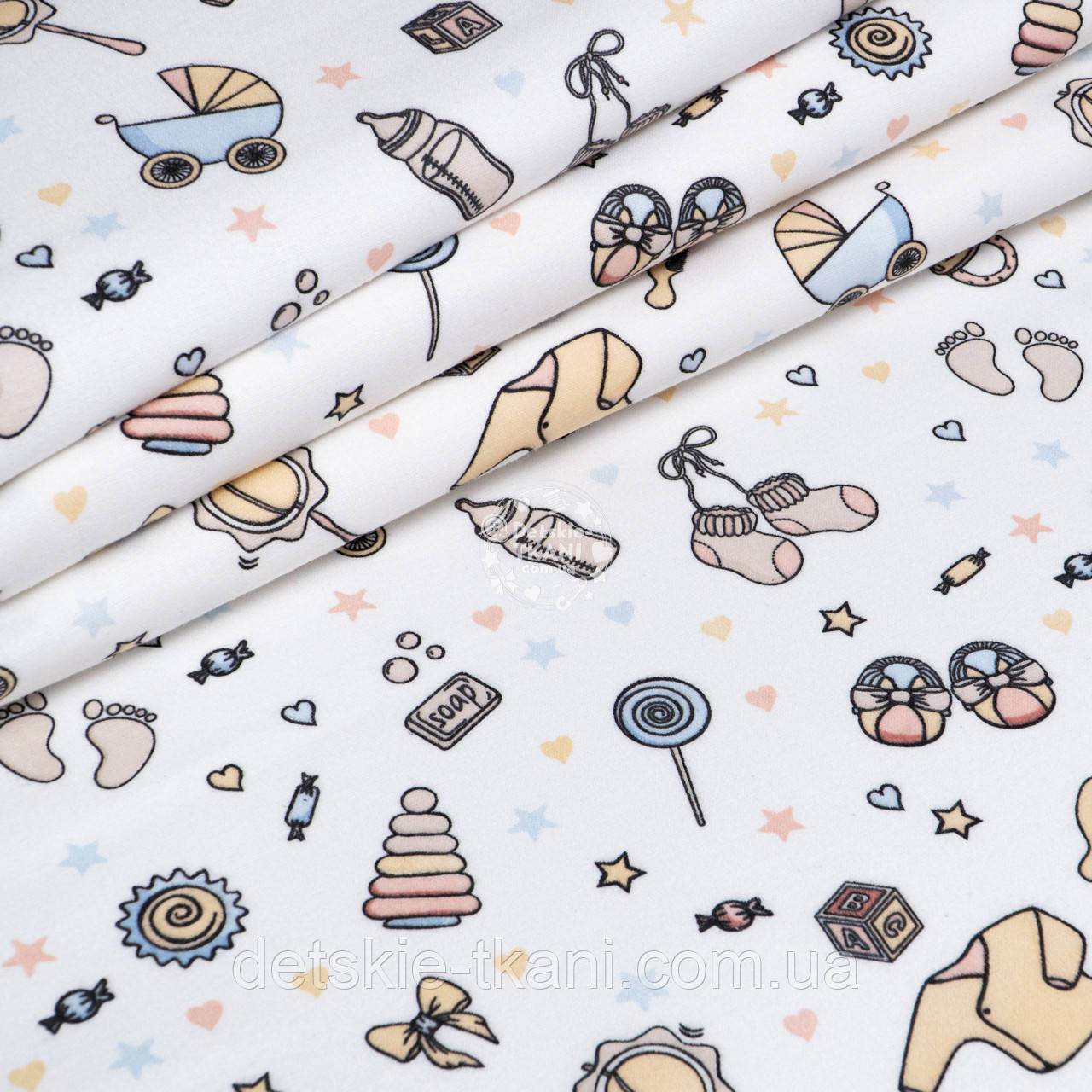 Фланель "Дитячі іграшки" на білому тлі, ширина 180 см