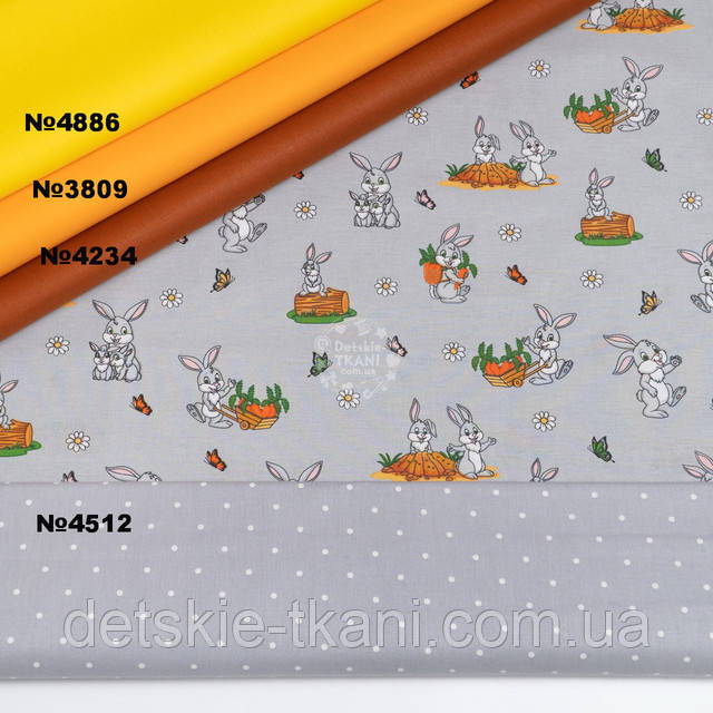 Ранфорс шириною 240 см "Зайчик із морквою" на сірому тлі, №4876