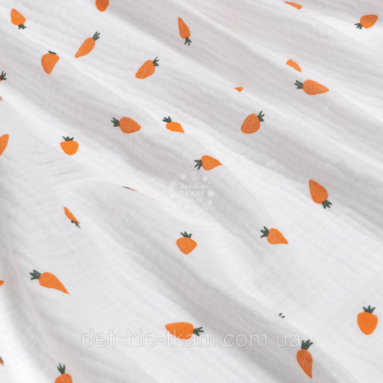 Двошаровий жатий муслін "Бебі-морквинки на білому тлі", ширина 135 см