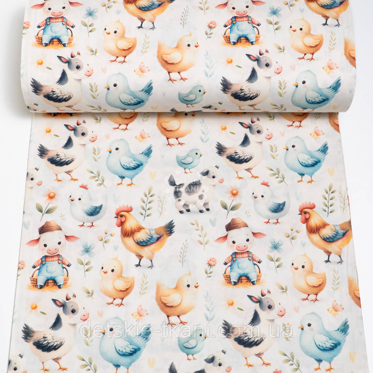 Ранфорс digital з цифровим друком "Порося, теля і курчатко", №5341