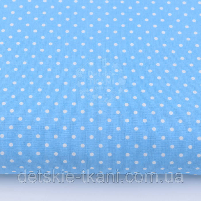 Бязь із білим горошком 4 мм на блакитному тлі (№164)