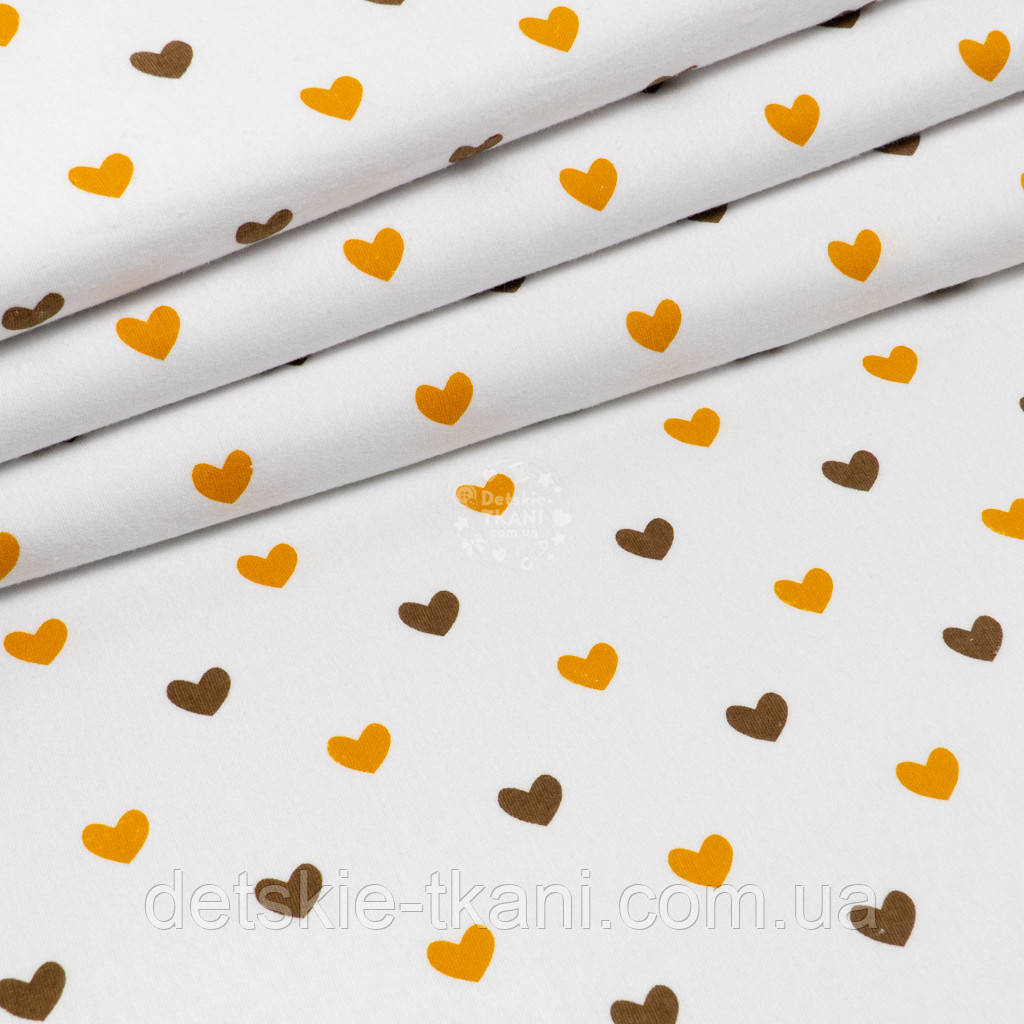 Фланель "Однакові сердечка" коричневі і гірчичні на білому, ширина 240 см